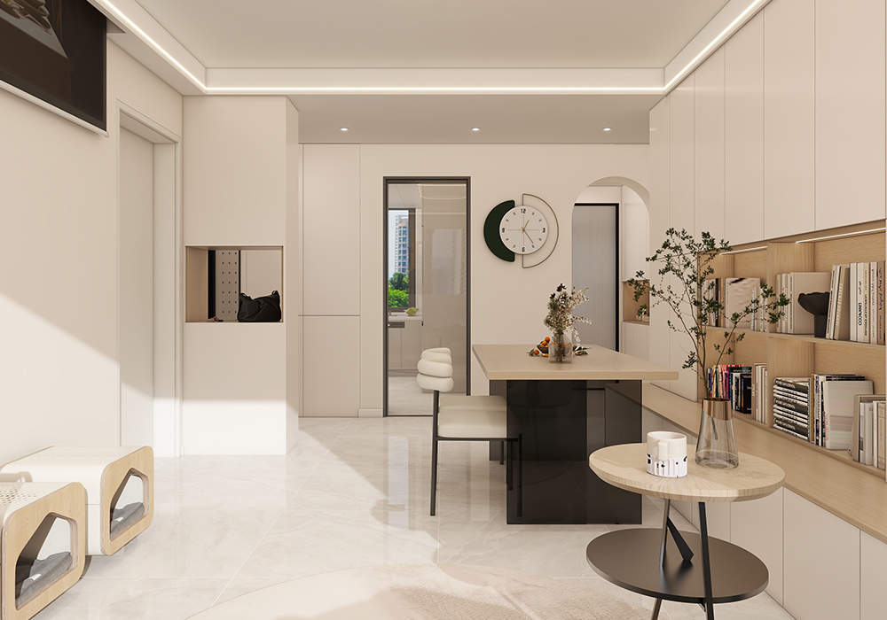 没有过多琐碎的装饰、通过墙面灯光等,提升空间的品质感和艺术氛围。通过简洁的设计元素和装饰手法,展现实用性。